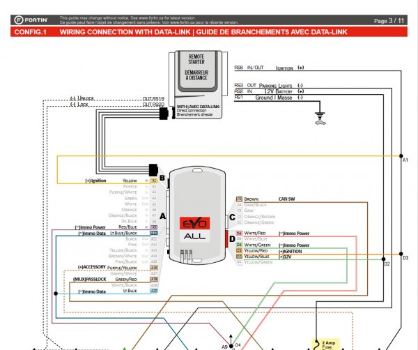 The evo-all will get power and ground through the data link (connector B), which will come from the power and ground connected to the remote starter module, hopefully this helps.